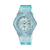Soak in the shimmer and shine of a compact analog watch with translucent bezel and band.Marine-inspired index markings and a sun-ray dial with a metallic shine come together in a...
