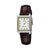 Features Dress watch Water resistant Quartz movement Small black indices Analog date display Polished gold-tone hands and bar markers Polished stainless steel gold-tone bezel stainless steel silver-tone caseback