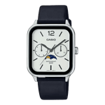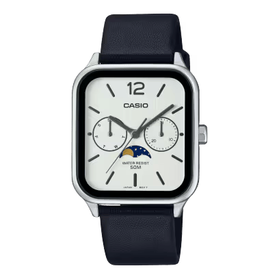 The Casio MTP-M305L-7AVDF is a sophisticated men’s analog watch that seamlessly blends style and functionality. Featuring a refined white dial with silver-tone markers, hands, and a date display at the 3 o'clock position, this timepiece is paired with a high-quality black leather strap. Its versatile design makes it ideal for both formal and casual occasions, providing reliable timekeeping with a classic appeal.