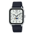 Color: White dial with silver-tone markers and hands, paired with a black leather strap, resulting in a clean and timeless appearance.