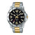 A must-have timepiece for all the watch aficionados, this men's analog watch from the Enticer collection by Casio will be a perfect pick. Its genuine leather strap vaunts a stunning black hue that enhances the look of the watch. Housed in a 45 mm case, the black round dial is protected by a mineral glass. It showcases plain three hands, dotted markings at five-minute intervals, bold stick markings placed at the 6th, 9th and 12th-hour position, a date display window and a crown for time adjustment. Furthermore, it is complemented with a buckle clasp that ensures a secure fit on the wrist.