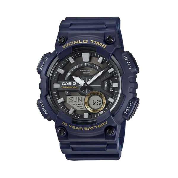الساعة التناظرية الرقمية ذات اللون الأزرق الداكن مليئة بالوظائف. ساعات Casio متطورة تقنيًا ومجهزة بوظائف تلبي متطلبات جميع أنواع الرياضة وجميع أنواع الأشخاص. ساعة كاسيو - الساعة للجميع!