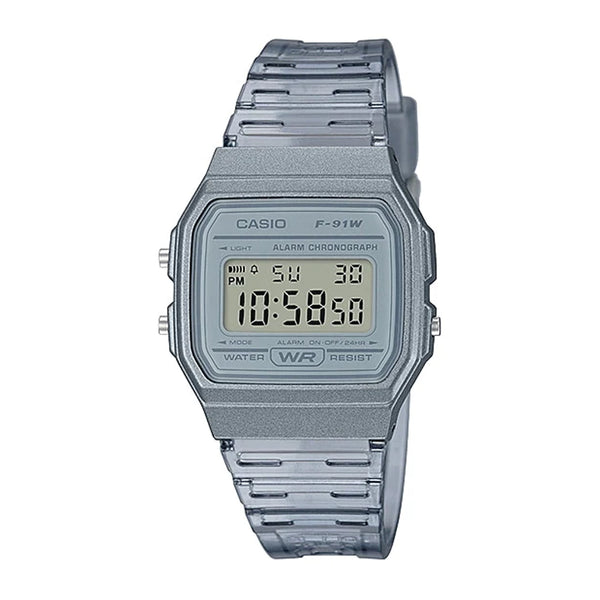 ساعة يد Youth رقمية سوار مطاطي للرجال من Casio رمادي مع العلبة الاصلية F-91WS-8DF
