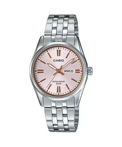 • Simple, easy-to-use design• His-and-her pairs• Day and date display at 3 o’clock• 50-meter water resistance