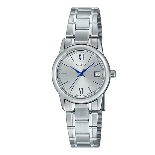 اجعل مظهرك أنيقًا للعمل أو اللعب مع مجموعة LTP-V002 من ساعات الفساتين من Casio. من خلال نافذة التاريخ المريحة في موضع الساعة 3 والأرقام الرومانية الكلاسيكية وفهارس الشريطية ، ستكون...