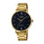 Stainless Steel Case Gold Tone Stainless Steel Bracelet Quartz Movement Mineral Crystal Black Dial Analog Display Solid Case Back Deployment Clasp 30M Water Resistance Approximate Case Diameter: 34mm Approximate Case Thickness: 8mm