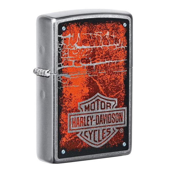 This rugged Harley-Davidson is created using the color imaging process on a Street Chrome lighter. Chromed-out elements reveal the chrome beneath the design in the cracks on the lid and the Harley-Davidson logo.