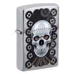 This classic Chrome metal Zippo windproof lighter boasts a mossy grey finish, accenting an antique anatomy manuscript of the human skull. This Skull Design is created using the color imaging process.