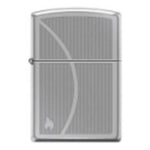 A flame is deep carved at the bottom of a Silver Windproof Lighter, accented with a oblique strip . The Deep carve method creates defined and strong contoured lines using state of the art 3D software.