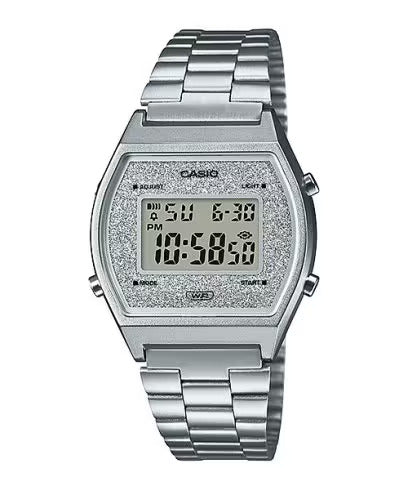 The Casio B640WDG-7DF is a stylish and functional digital watch from Casio's collection, designed to combine retro aesthetics with modern features. Featuring a classic square design with a sleek silver-tone finish, this watch offers both versatility and reliability for everyday wear. With essential functions such as an alarm, stopwatch, and water resistance, the B640WDG-7DF is the perfect choice for those who want a practical yet fashionable timepiece.