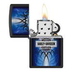 This black matte Harley-Davidson lighter features the classic Harley-Davidson logo with a unique and colorful twist. Comes packaged in a gift box. For optimal performance, fill with Zippo lighter fuel.