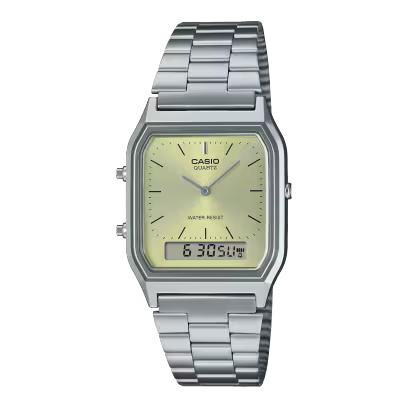 The Casio AQ-230A-9AMQYDF is a part of Casio's classic collection, combining a retro design with modern digital features. With its striking yellow-tone resin case and durable stainless steel band, this...