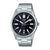 A must-have timepiece for all the watch aficionados, this men's analog watch from the Enticer collection by Casio will be a perfect pick. Its genuine leather strap vaunts a stunning black hue that enhances the look of the watch. Housed in a 45 mm case, the black round dial is protected by a mineral glass. It showcases plain three hands, dotted markings at five-minute intervals, bold stick markings placed at the 6th, 9th and 12th-hour position, a date display window and a crown for time adjustment. Furthermore, it is complemented with a buckle clasp that ensures a secure fit on the wrist.