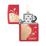 This red matte windproof lighter is adorned with gold flowers and the classic Zippo logo . The Zippo lighter is easy to use, with an advanced touch ignition system. Made...